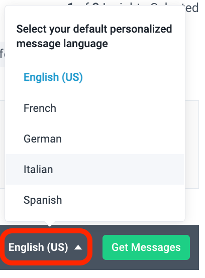 - Yes, before you hit the “Get Messages” button you can select which language you would like to create your messages with. We currently support English, French, German, Italian, and Spanish.