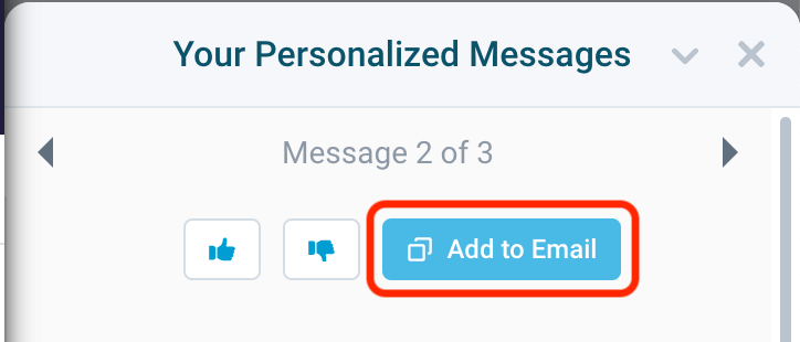 - If you are generating messages from the Outreach/Salesloft/Gmail extension you simply need to click the “Add to Email” button.