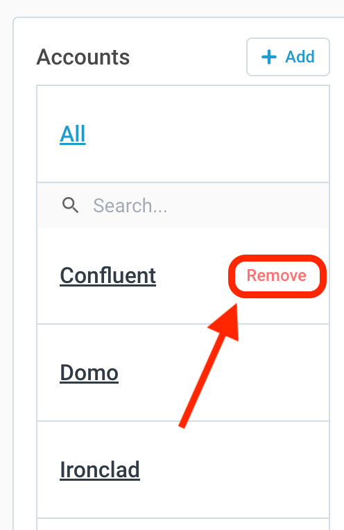- You can easily remove Accounts on your list individually by clicking on the “Remove” button when you hover over the account on the left side panel.