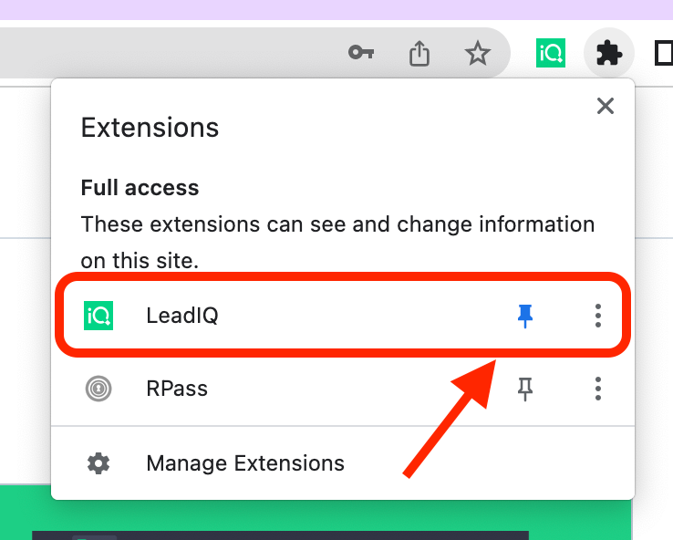 - It is recommended to pin LeadIQ to your bar so that it is easily accessible anytime you are prospecting.