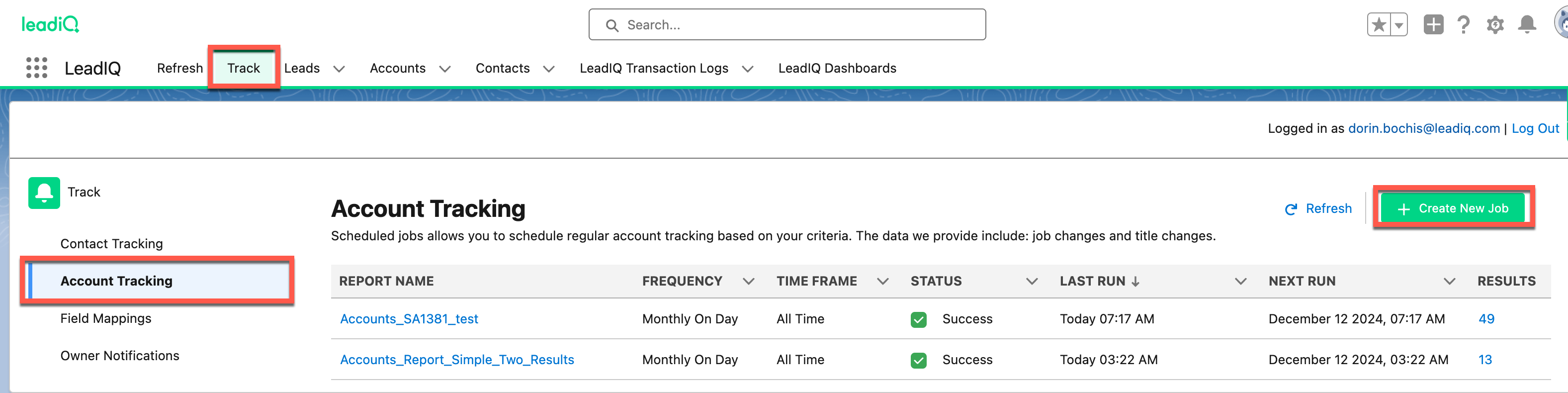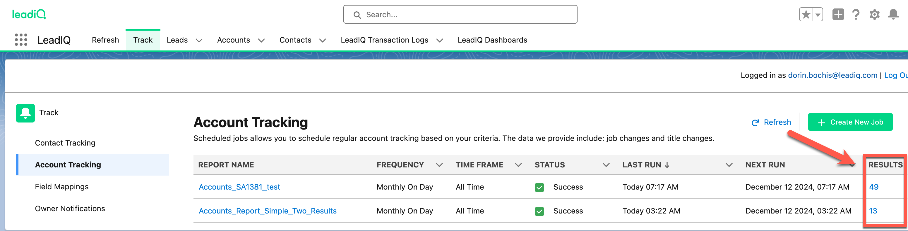 - Click on the number in the Results column for the desired report on the Account Tracking tab