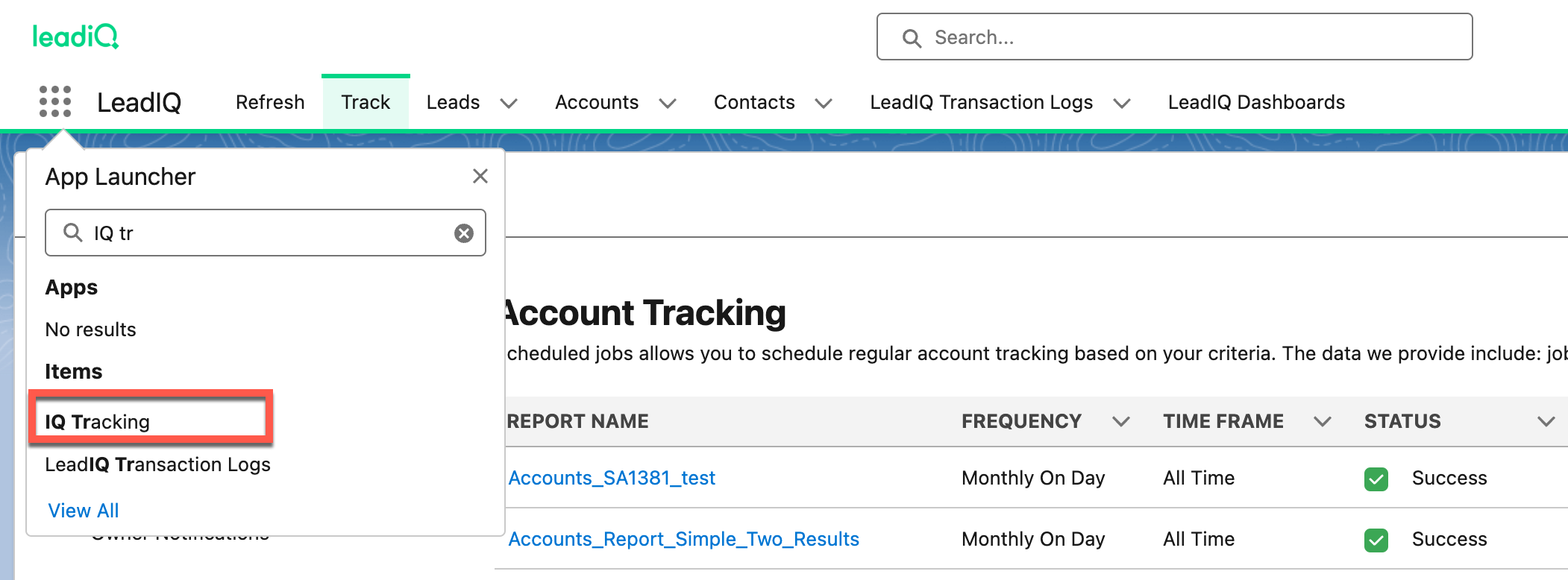 - Find and click IQ Tracking in the Salesforce App Launcher