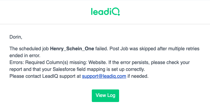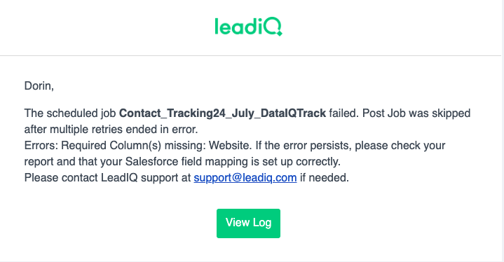 For the user who is logged into LeadIQ from the package, a notification will be sent of any job results for Account Tracking.